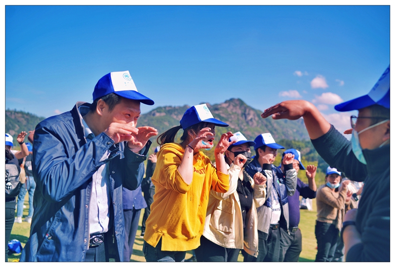 甫一落地,所有员工被随机打散,被分成了18个竞赛小组。为了营造竞争氛围,教练要求18个小组以相邻小组互为对手,形成9个竞争单位,玩一个“老虎-大象-老鼠”五局三胜制小游戏。一时间绿茵地上“百兽群集”,虎啸、象吼、鼠吱声不绝于耳,各个小组互不相让,不断在老虎、大象和老鼠之间变换,有时候手脚并用难免忙中出错,最后变出一个四不像,引起哄堂大笑。不过笑归笑,闹归闹,比赛的主线却没有断,不一刻钟基本上胜负已定,教练将各个小组的表现分数都记录下来。