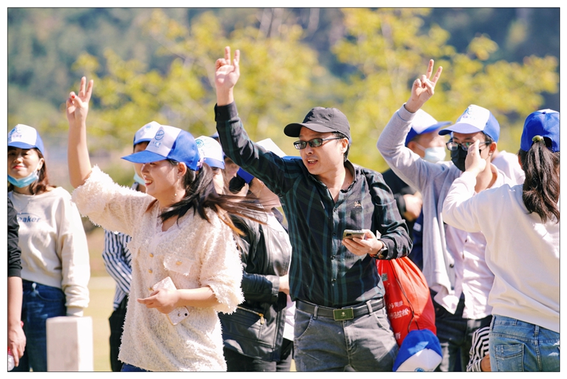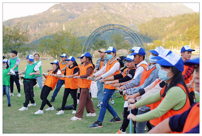 时过下午4点,团建活动的最后一道大餐——动力绳圈如约而至,相比前面几个大小游戏,动力绳圈明显难度更高,也更吃体力。所有员工再次合而为一,形成里外两个大圈,每个人都伸出双手握住绳圈,无论是向上提、向下压,还是往前推、往后拉,都必须步调一致、动作一致、口号一致,可以说如果有一丝不契合,大部分往前推而小部分人往后拉,这个挑战活动就玩不下去了。