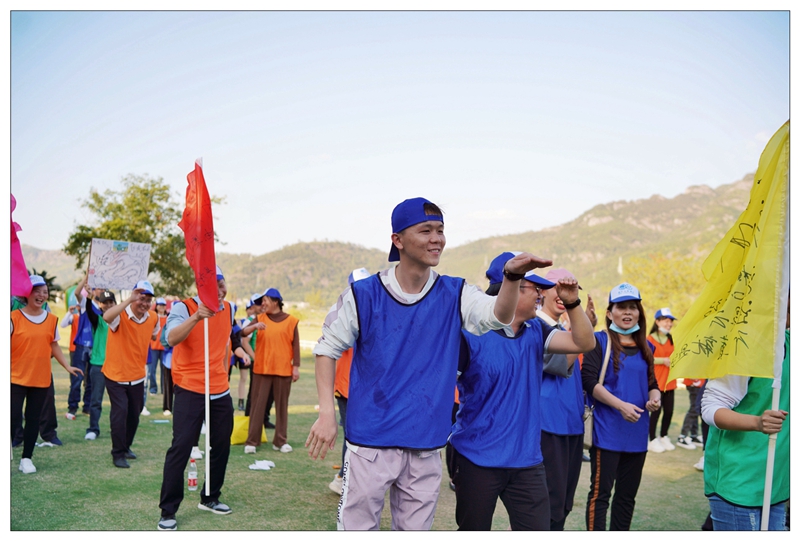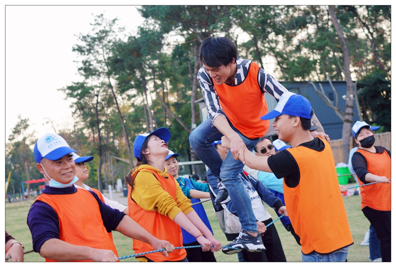 经过大半天的团建活动,大家不免有一些疲劳,但真正面对有挑战性的活动时,精神顿时充满了能量,在短暂的热身之后,无论教练发出什么样的号令,大家都丝毫无差的加以执行,让人不免对这支大团队感到由衷的钦佩和感动。教练决心加大难度,将18名队长抽调出来,各人手握本队的队旗在中圈摇旗呐喊,然后又抽调一些体型与轻重不一的员工站在绳圈上走上足足两圈,这一下子大大增加了握住绳圈员工的压力,大家不得不咬紧牙关,采取通力合作和责任分担方式,终于圆满地完成了教练指定的各项挑战。