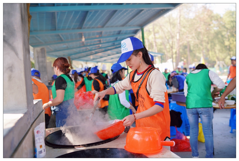话虽如此,但此刻大家的肚子开始咕咕叫起来,不吃饭哪里会有战斗精神呢?教练对此早有准备,不再像往常企业团建活动安排“坐餐”——将饭菜做好等待大家用餐,而是给大家安排了别开生面的“行餐”,有锅灶,有木材,有食材,有调味品,就是没有坐下就能吃的饭菜。在工作中推崇奋斗者精神的圣普人看来,自己动手,丰衣足食,凭借自己的双手做出一顿美味的佳肴,不过是一件理所应当的事。